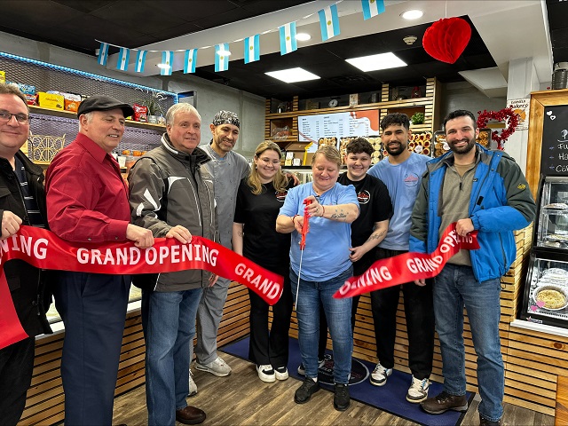 Posted February 15, 2024Ribbon-cutting at new Carmelo Bakery: City Council President Gary LaPelusa, City Council Member At-Large Juan Perez,First Ward Council Member Neil Carroll III, and Mayor Jimmy Davis joined members of the Pereira family at the ribbon-cutting ceremony for the opening of the Carmelo Bakery at 27th Street and Broadway. The owners of the bakery came to Bayonne from Uruguay and Argentina. The business makes South American treats. The products include pastries, torts, cakes, cookies, small pizzas, sandwiches, and Colombian coffee. The name Carmelo comes from a bridge in Uruguay.