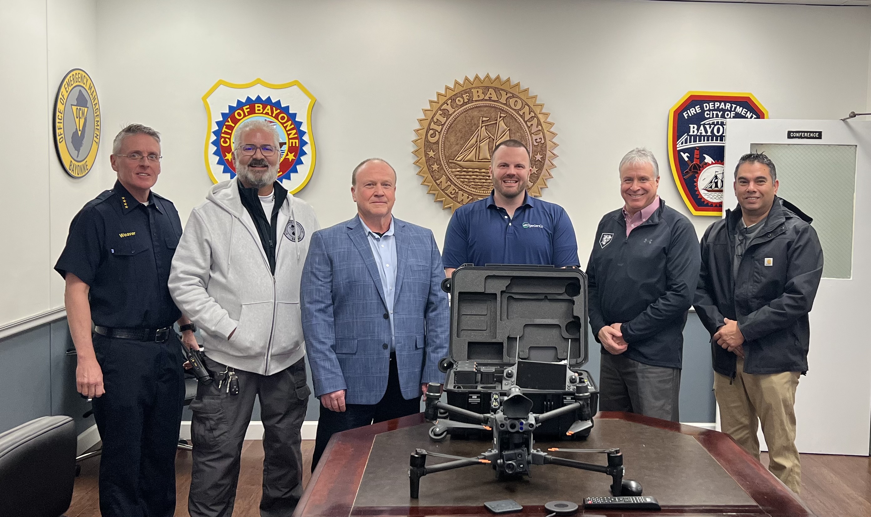 Posted March 13, 2024Bayonne Office of Emergency Management Coordinator Junior Ferrante, along with Mayor Jimmy Davis and Fire Chief Keith Weaver met with representatives of the Bayonne Energy Center (Shawn Picard and Tom Miller), as well as Bayonne Police Captain Carlos Betancourth of the Guardian Foundation for a demonstration of a new Public Safety Drone.