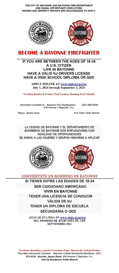 Information available at: Bayonne Fire Headquarters (201) 858-6008