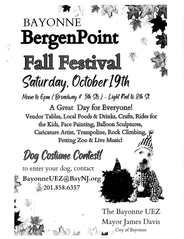 Posted October 08, 2024Join us for a fun-filled day at the Bayonne Bergen Point Fall Festival on Saturday, October 19th, 2024! This family-friendly event promises something for everyone, with activities, food, and entertainment throughout the day.