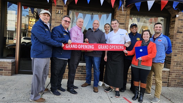 Ribbon-cutting at Adour Bistro in Bayonne: City officials joined the staff of Adour Bistro for a ribbon-cutting to celebrate the opening of the restaurant at 715 Broadway. The new eatery is an American bistro with French and Italian influences. The menu includes a variety of items that range from burgers and steak to branzino, chicken Stroganoff pot pie, mussels with fries, and eggplant. The bistro is named after the Adour River, which flows around Bayonne, France. The drinks list includes wine from Bayonne, France. Future plans include featuring jambon, the style of ham from Bayonne, France. The restaurant’s website is adourbistro.com. The eatery is in Bayonne’s Urban Enterprise Zone (UEZ). Pictured left to right: City Council Member At-Large Juan Perez, City Council President Gary LaPelusa, Mayor Jimmy Davis, bistro business partner George Tsopelas, Tania Kondrashov, chef and bistro business partner Andrei Kondrashov, City Council Member At-Large Loyad Booker, Bayonne Chamber of Commerce representative Alicyn Perry, and First Ward City Council Member Neil Carroll III.
