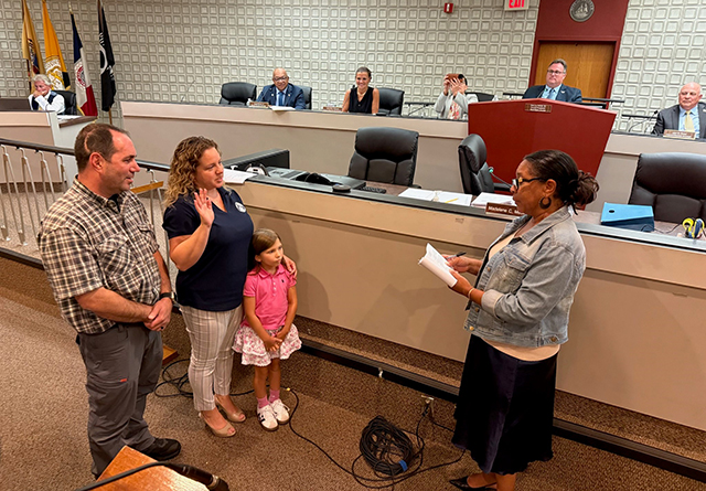 Posted August 14, 2025Bayonne’s New Health Officer: Tina Siciliano was sworn in as Bayonne’s new Health Officer at the City Council meeting on August 13. City Clerk Madelene Medina administered the oath of office. Pictured left to right in the foreground: Gary Parlatti (Building Inspector, City of Bayonne), the Health Officer’s husband; McKayla (Ms. Siciliano’s daughter), and City Clerk Medina. Pictured left to right the background: City Law Director Jay Coffey; City Council Member At-Large Loyad Booker; Second Ward Council Member Jacqueline Weimmer; Assistant City Attorney Karla Garcia (with camera); City Council President Gary LaPelusa; and City Council Member At-Large Juan Perez. In New Jersey, a Health Officer is responsible for evaluating health problems and planning appropriate actions to address those problems. A Health Officer must have either a doctorate or a master’s degree in a health-related field. A candidate for Health Officer must have at least two years of full-time employment, which provides administrative experience in three of five recognized public health activities. A successful candidate for Health Officer must pass a state-administered, two-part examination. Ms. Siciliano, who served previously as a Registered Environmental Health Specialist, earned a master’s degree in Public Health (MPH) at William Paterson University. Ms. Siciliano said, “I am very excited to assume the duties of Health Officer. I look forward to working with colleagues in Bayonne and around the state to safeguard the health of our residents.”