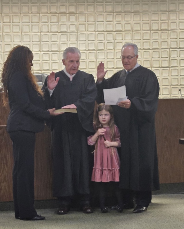 Posted November 04, 2025Photo Caption: New Bayonne Municipal Judge Chistopher Patella: New Judge Chistopher Patella takes the oath of office, which was administered by Hudson County Superior Court Presiding Judge David Katz. Pictured left to right: Lisa McMurray (holding the Bible), Judge Patella, Harley Brook Patella, and Judge Katz. The ceremony took place in Bayonne Municipal court.