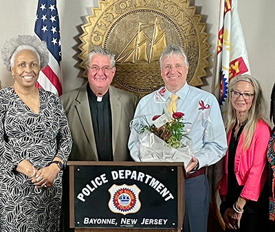 Posted May 17, 2021Senior of the Year in Bayonne and Hudson County: Pastor Gary Grindeland of Grace Lutheran Church has been named Senior Citizen of the Year in both Bayonne and Hudson County. He was honored with presentations by Mayor Jimmy Davis and the Bayonne Office On Aging at City Hall and in a video prepared by the County of Hudson. Pictured left to right: Joyce Person-Perkins (Executive Director of the Bayonne Office On Aging), Pastor Gary Grindeland, Mayor Jimmy Davis of Bayonne, and Annie Grindeland (sister of the honoree).