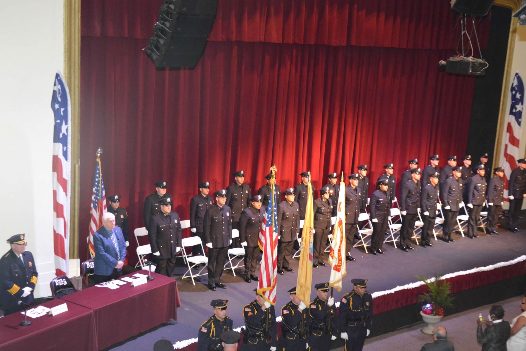 Posted June 17, 2021The City of Bayonne held a swearing-in ceremony for new police officers who have joined the Police Department in 2019, 2020, and 2021. Their ceremonies were postponed as a result of the Coronavirus. The group of new officers includes the department’s first Filipino officer and the first two Black female officers. This event took place in the Bayonne High School Auditorium, which was large enough to accommodate the new officers, their families, City officials, and other guests.