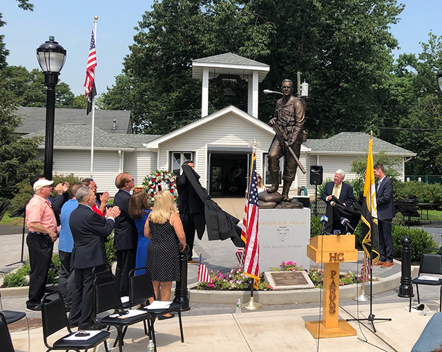 Posted July 15, 2021Unveiling ceremony for statue of Stephen R. Gregg: Public officials, veterans, members of the public, and the Gregg family took part in a ceremony for the unveiling of a statue of Stephen R. Gregg, a Bayonne resident who received the Congressional Medal of Honor for his heroism in southern France in August 1944 during World War II. The statue is located in Stephen R. Gregg-Bayonne County Park at 43rd Street and Kennedy Boulevard in Bayonne. The statue was made by Midwestern sculptor J. Brett Grill.